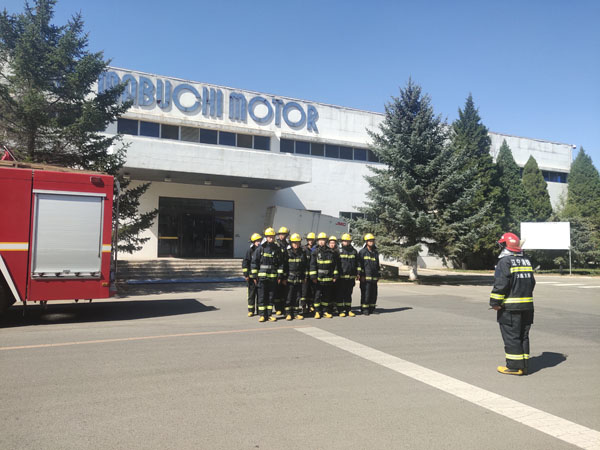 老虎屯消防中隊(duì)到萬(wàn)寶至萬(wàn)達(dá)工作現(xiàn)場(chǎng)做模擬實(shí)戰(zhàn)演習(xí)