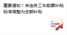 重要通知!來連務工車船票補貼標準調整為全額補貼